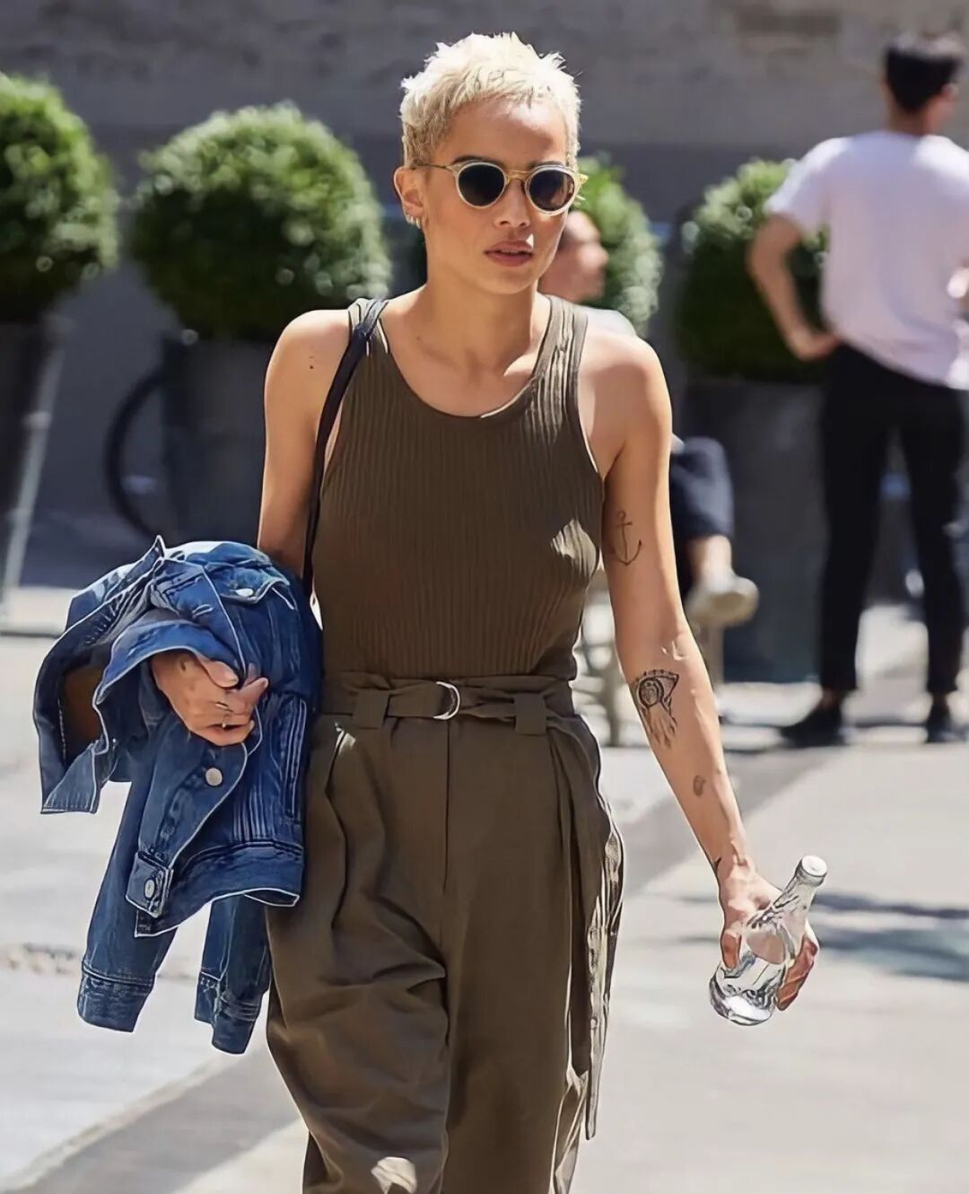 Zoë Kravitz的红毯造型性感美丽,而私服穿搭又像是变了个模样,舒适随性,简单轻松。T恤和背心是她夏天常穿的款。