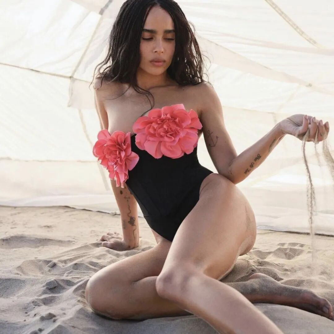 Zoë Kravitz尽管身高只有157cm,但娇小玲珑的她毫不吝啬于展示她火辣的身材。今年同时登上美英两版《ELLE》封面,大面积露肤没有一点俗气,普通人用秒变翻车现场的大花朵在她这里就是点缀的装饰,一朵不嫌少,两朵不嫌多。