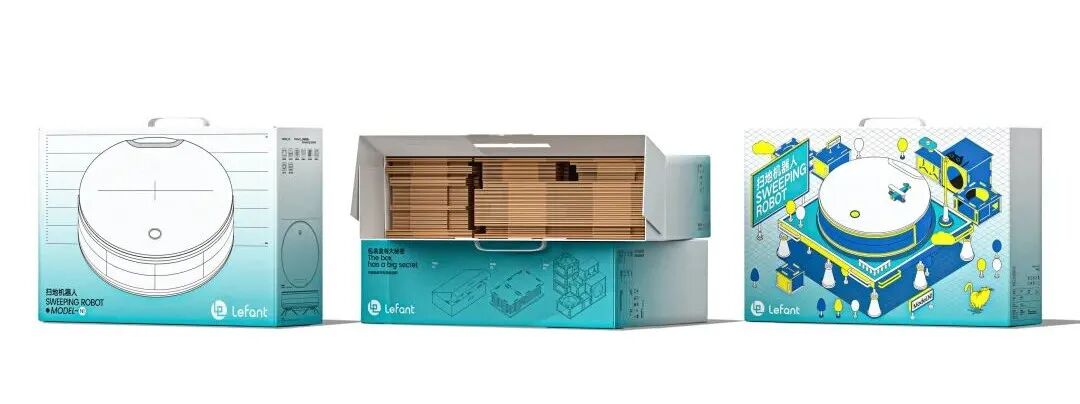 通过挖掘扫地机器人的使用场景,重新构造包装的内部空间,将包裹产品的泡沫改为环保的瓦楞纸板。除了能很好的保护产品,又能DIY组合搭建成猫窝、置物架、鞋盒、脏衣篓等,让包装以多种形态陪伴家居和爱宠,延续包装的生命周期。