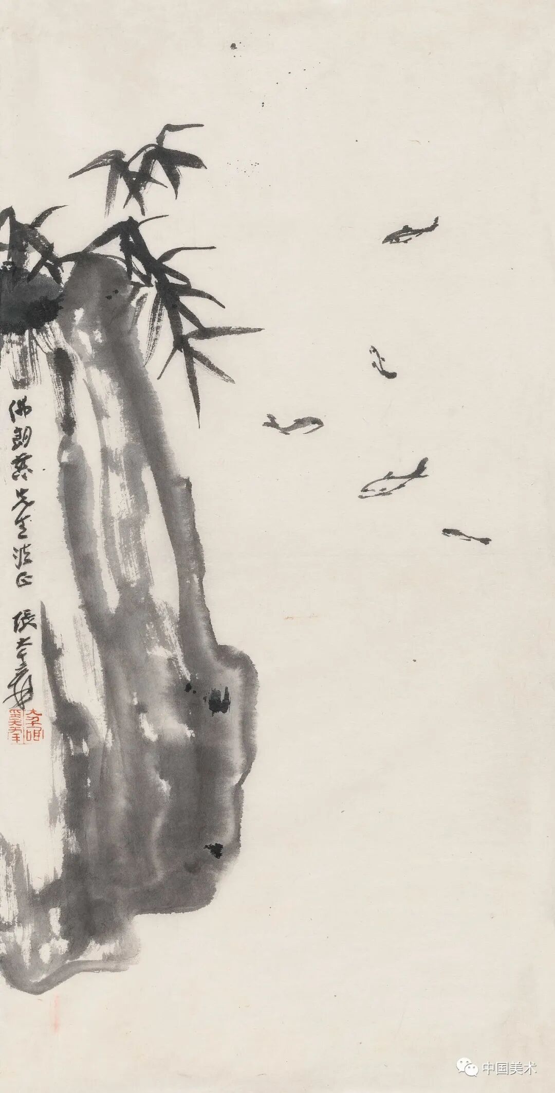 张大千 《竹崖游鱼》