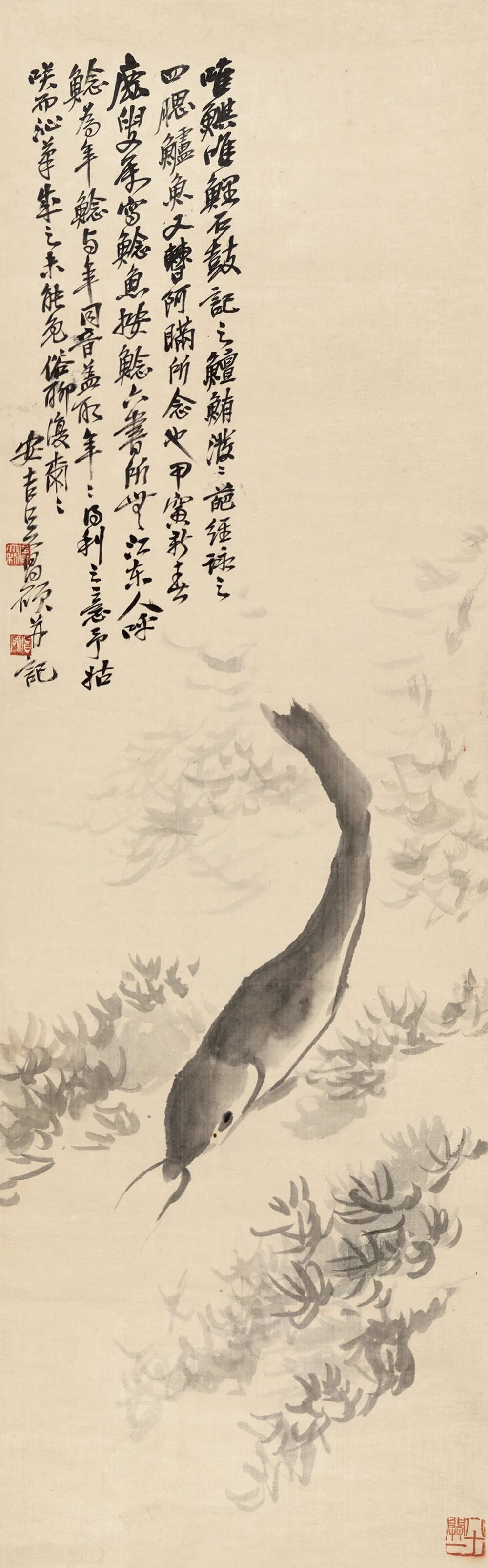 八大山人 《拒霜游鱼图》