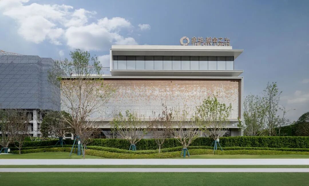 项目位于宁波主城区北部中心,展示区概念致敬了宁波当地的航海文化与学院文化。主体建筑提取“云帆”、“飞檐”的元素,建筑形象新锐而独具视觉记忆点,寓意着乘风破浪,永立潮头的风帆生活主义画卷。