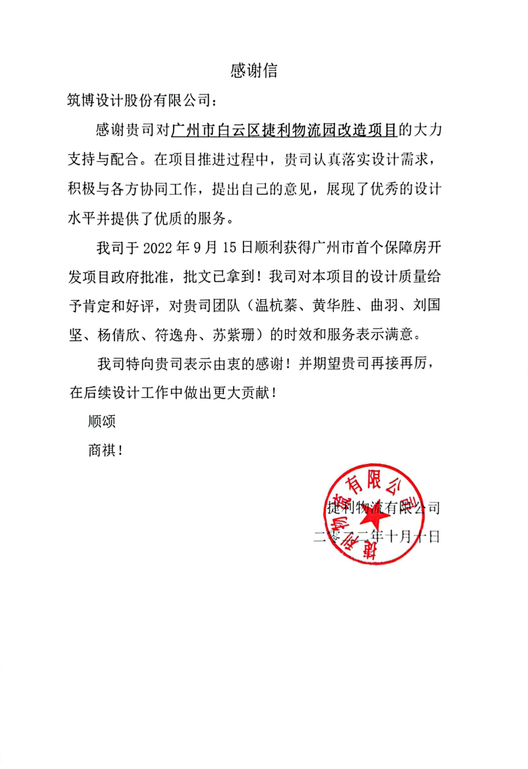 城市建筑、产业化研究中心、惠州分公司感谢信