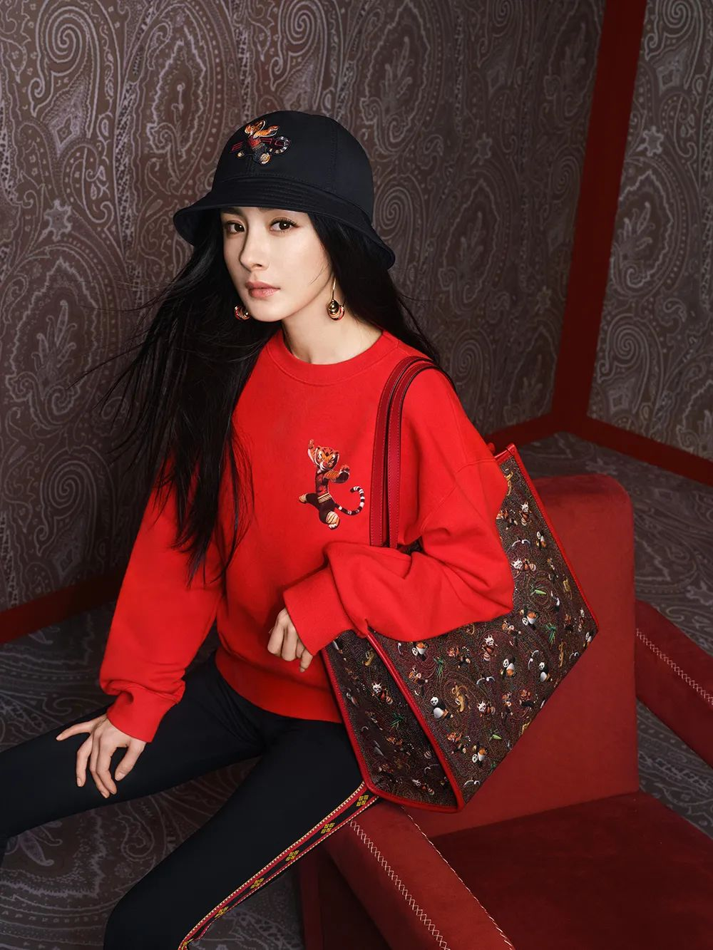 当然还有《功夫熊猫》里的悍娇虎,如Etro选择用悍娇虎的形象与品牌代表性的佩斯里花纹结合推出新品。