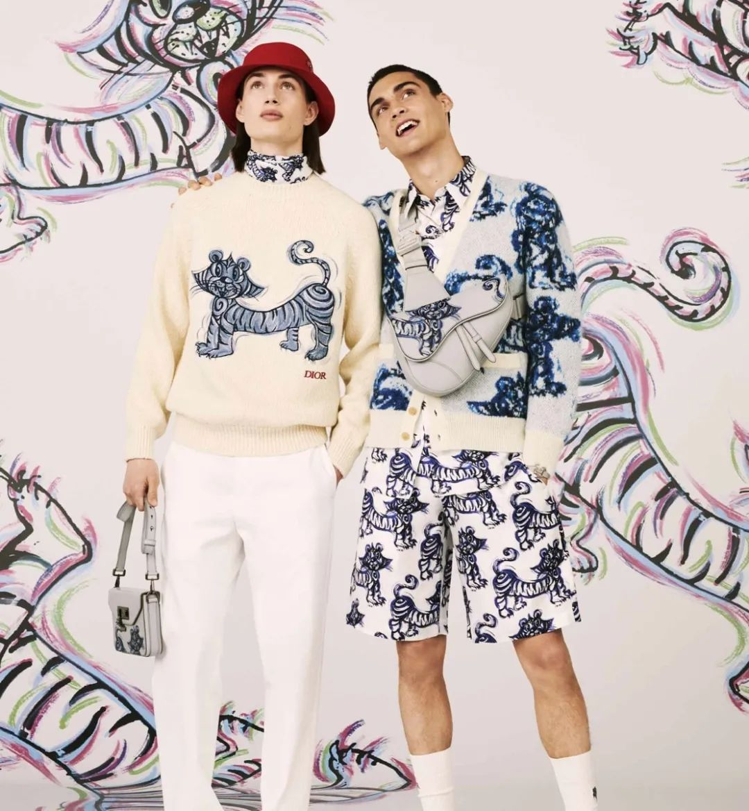 Dior男装再次携手纽约涂鸦艺术家Kenny Scharf,以涂鸦艺术重新诠释了中国十二生肖中的虎图腾。