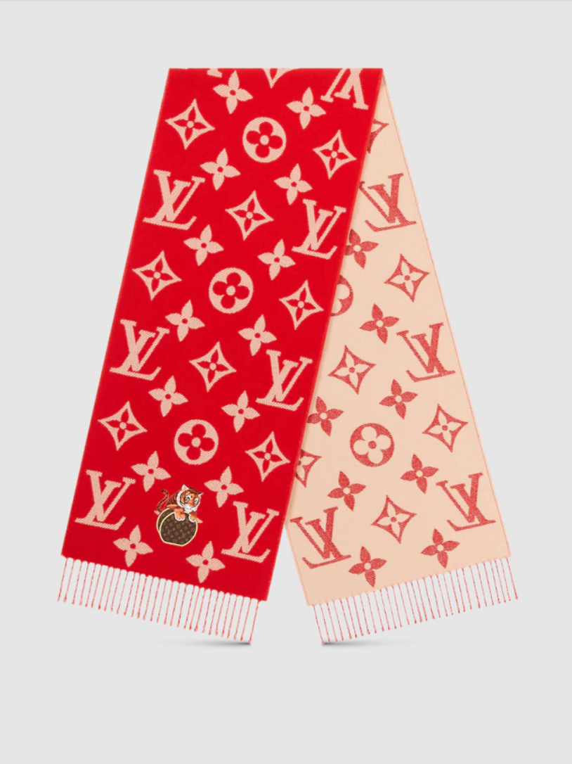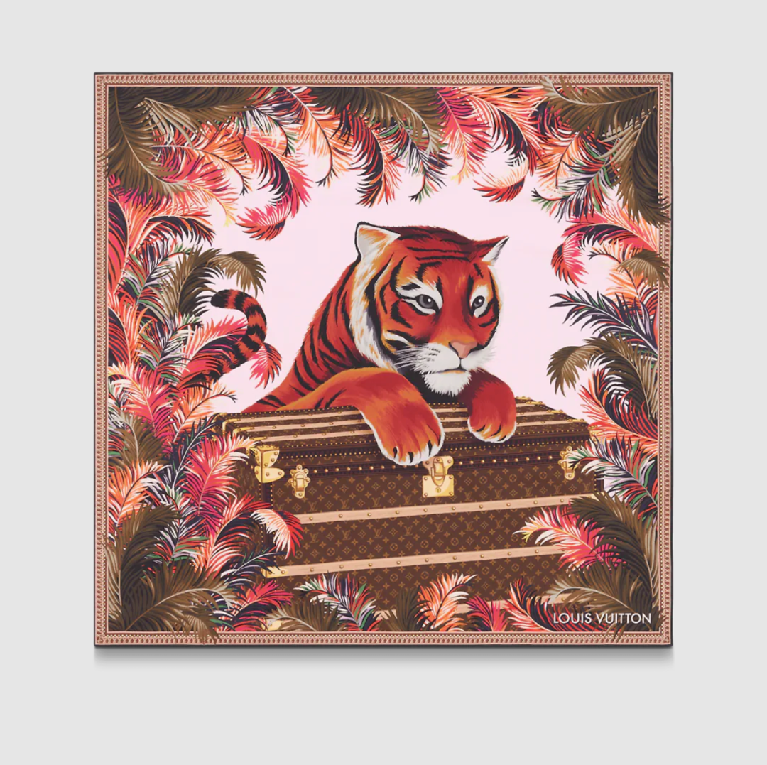 Louis Vuitton虎年生肖特别系列几乎完全延续了牛年生肖的设计,只是将牛替换成老虎元素。羊绒围巾、虎头吊坠等小配饰则能在细节间展现出虎年特色。