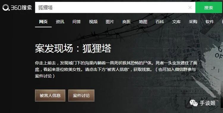 最近,手谈姬听说有搜索网站搞了一个“线上剧本杀”,刚开始姬还没在意,又是狼人又是三国,又是本格又是变格的,这杀那杀火了之后,都有线上版本,也没啥好奇怪的……