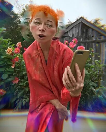 2017年,辛迪·舍曼开了自己的Instagram账户,创作了数十张被操纵的肖像。她的脸就像画布一样,用各种各样的手机应用程序来扭曲、重塑、修饰,以及添加背景和化妆品,或者痣和皱纹......