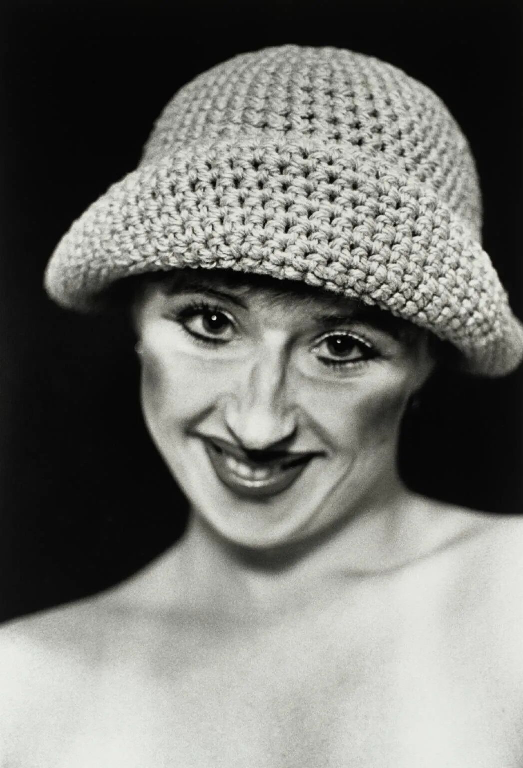 大家会发现,舍曼在这组作品中,通过服饰(主要是各种帽子、发饰)、发型、化妆,再结合不同的表情和姿势,扮演了五位不同的社会角色。比如“B”是一位苦乐人生的小丑,“C”是有些羞怯、天真、古怪的小女孩形象,而“E”则是一位有点放荡、妖艳的妇女。
