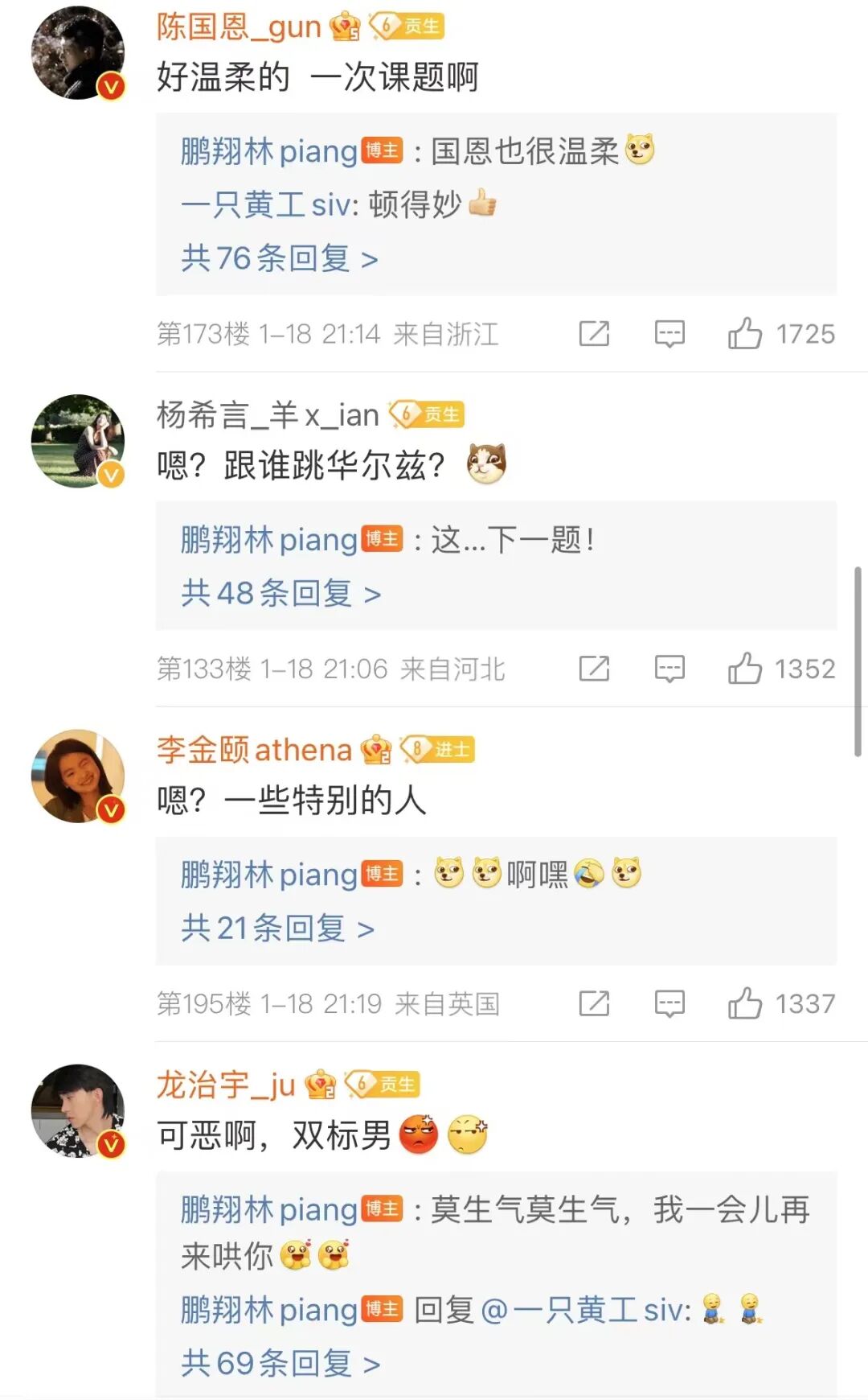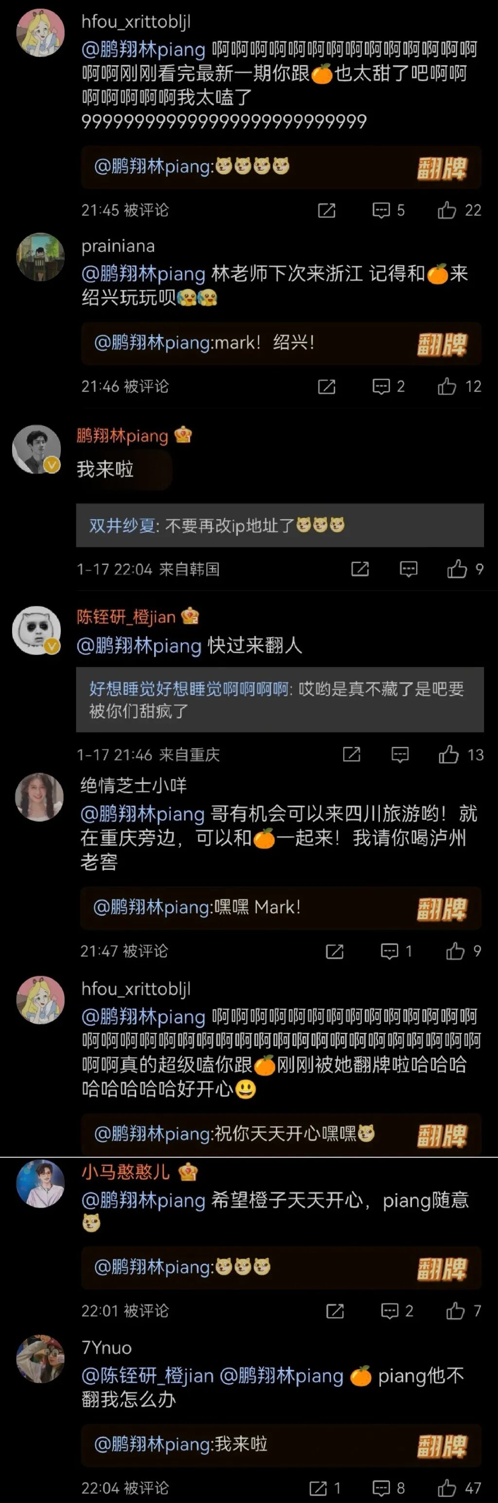 而且在微博评论中,其他实习生们都有暗戳戳的评论,当然我们的林piang也都没有否认,我们磕的cp原来是真的。
