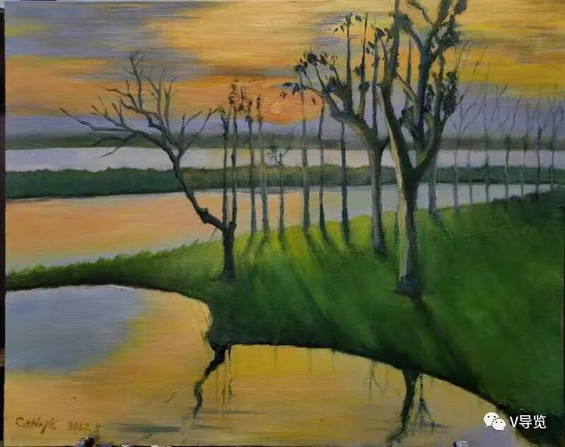 1~6油画,30x40 1)江南水乡,2)南昌路,3)草原,4)树,5) 小区秋色,6)落日,