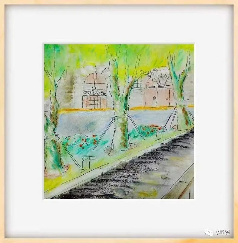 2. 初秋的世纪公园一角;布面彩铅;17X26;