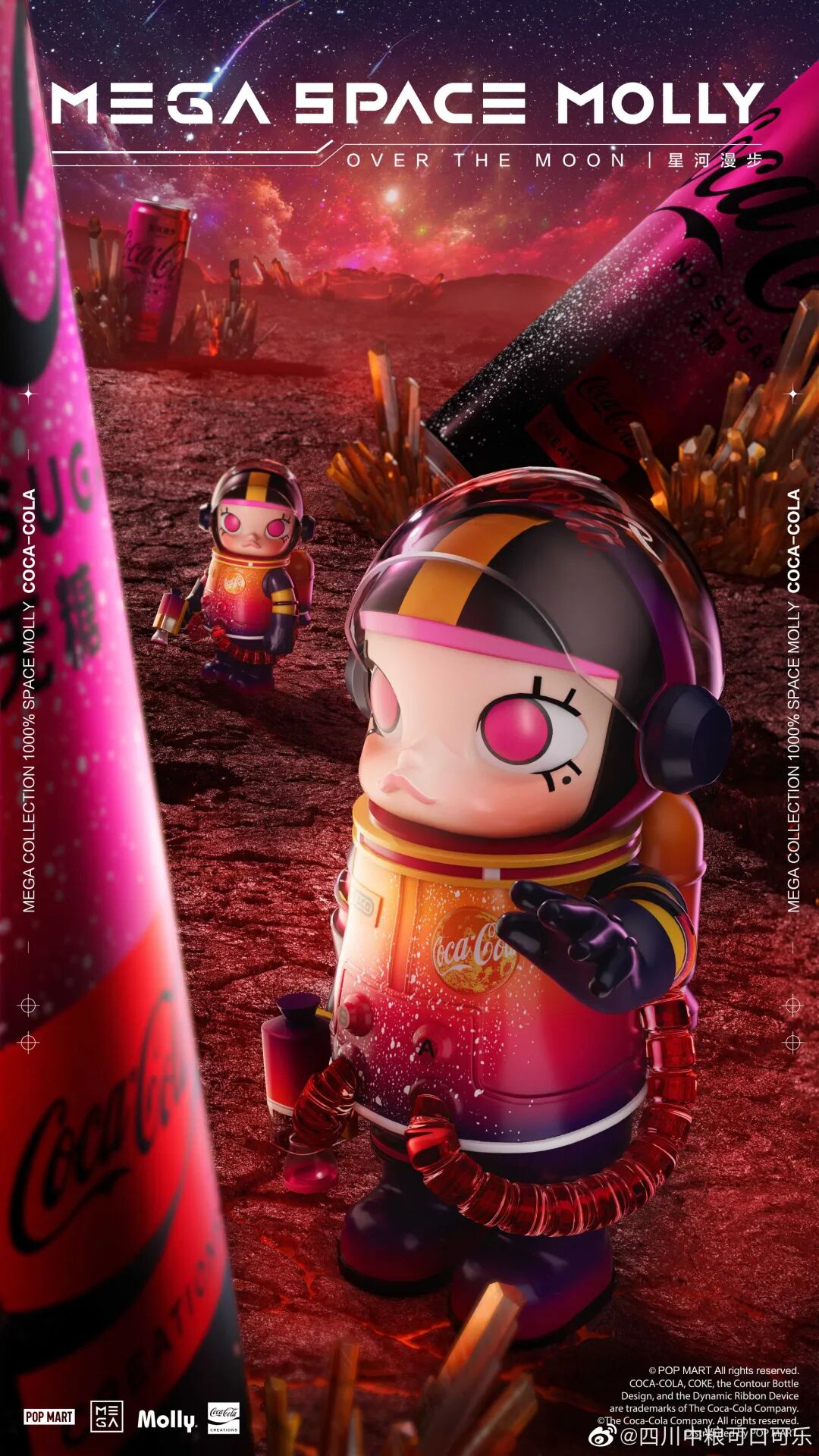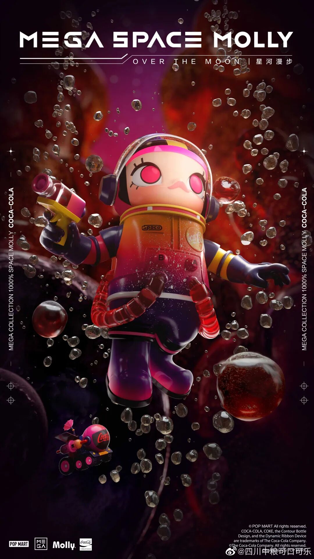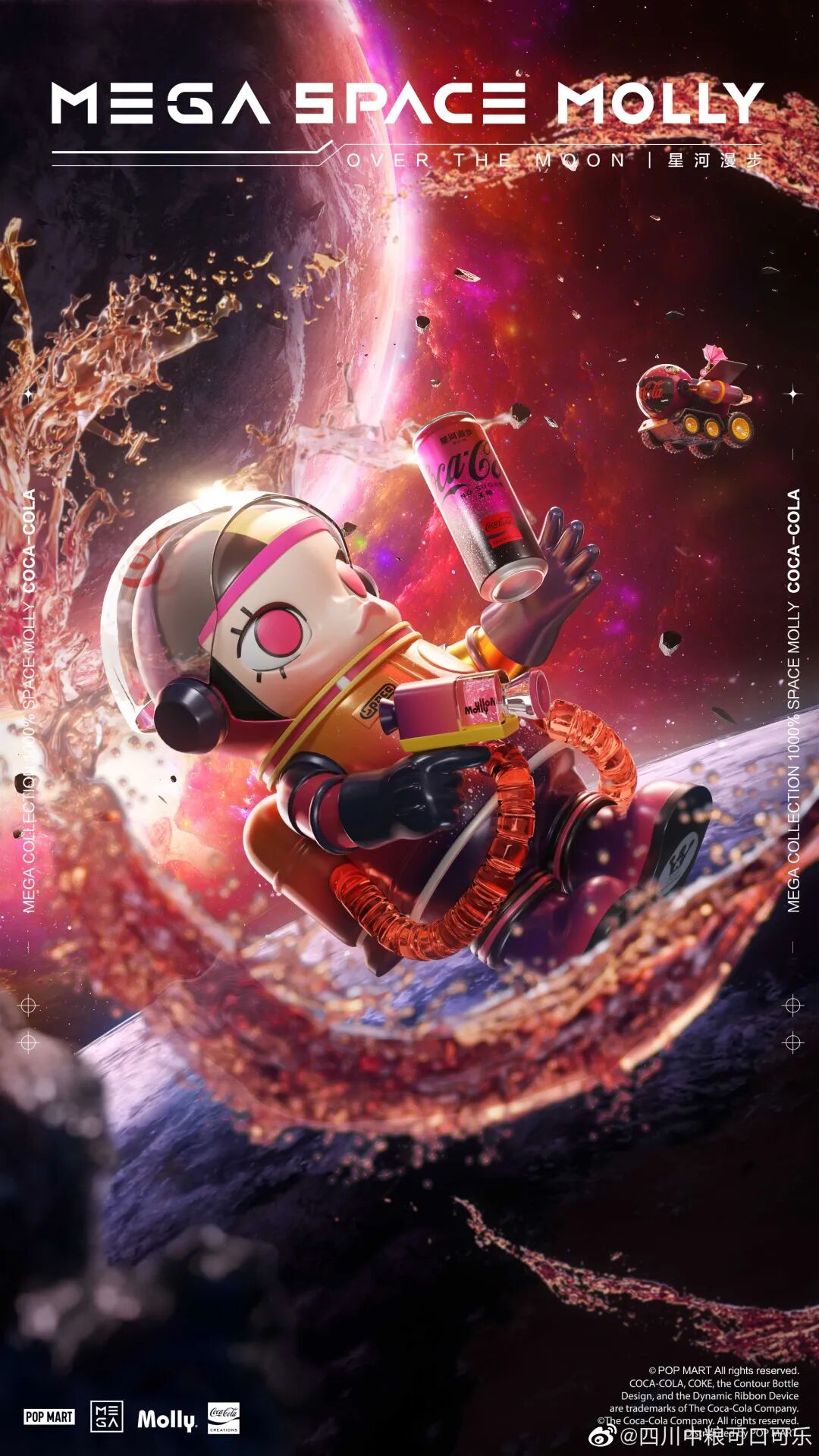 近日,泡泡玛特联合可口可乐推出MEGA珍藏系列限量款包装!SPACE MOLLY可口可乐搭载宇航漫步车,一同踏上宇宙漫游的旅途,心动预警!