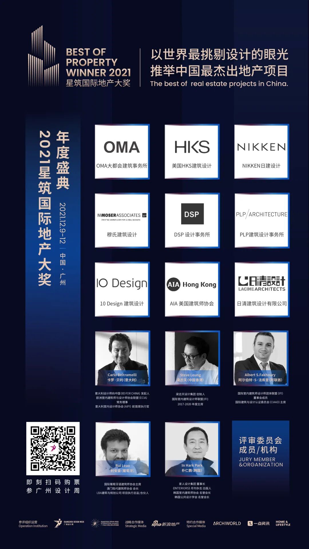 由9个国际权威建筑设计机构、5位全球设计组织领袖和国际顶尖建筑师等专家组成2021BOP星筑国际地产大奖评审委员会,以职能与人文的兼容、空间布局规划创新性、技术创新和趋势体现、社会与环境效益兼容性、可持续发展性等五大综合指标对中国各类型地产项目进行全面评定,全方位探讨全球化时代中国地产设计发展新风向。
