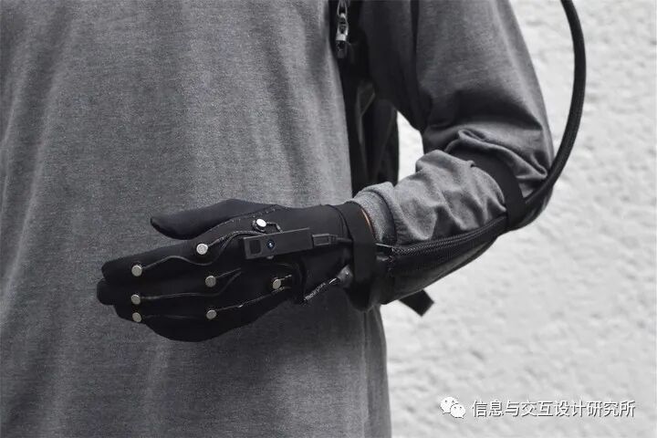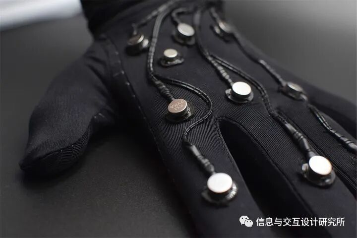 在手套上分布了多个振动马达,在实际应用中,每个振动马达代表了不同的方向,而振动的强度则代表了佩戴者与障碍物的距离。