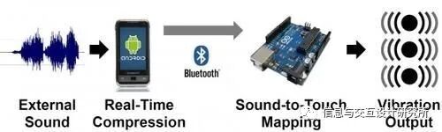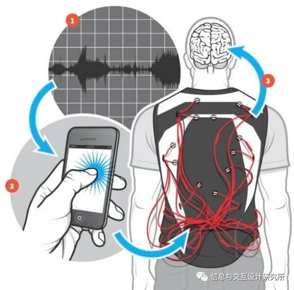 这款vest设备支持通过蓝牙连接至智能手机来输入音频信息,能够让音频从环境噪音中分隔出来。对语音声波信号进行分析意义,在进行转换后转换成电信号并通过Vest装置转换成振动。每种声音均会在装置的不同部位产生特定的振动模式,形成特有的“听觉图样”。