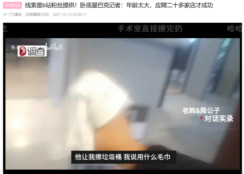 其中一名卧底记者“老韩”在B站视频《线索是b站粉丝提供!卧底星巴克记者:年龄太大,应聘二十多家店才成功》中提到了更多细节。在店员让老韩用台面上的毛巾擦垃圾桶的时候,老韩有迟疑,店员解释“按规定不能用这个毛巾,得用那个抹布。你就用这个吧,没事儿。”