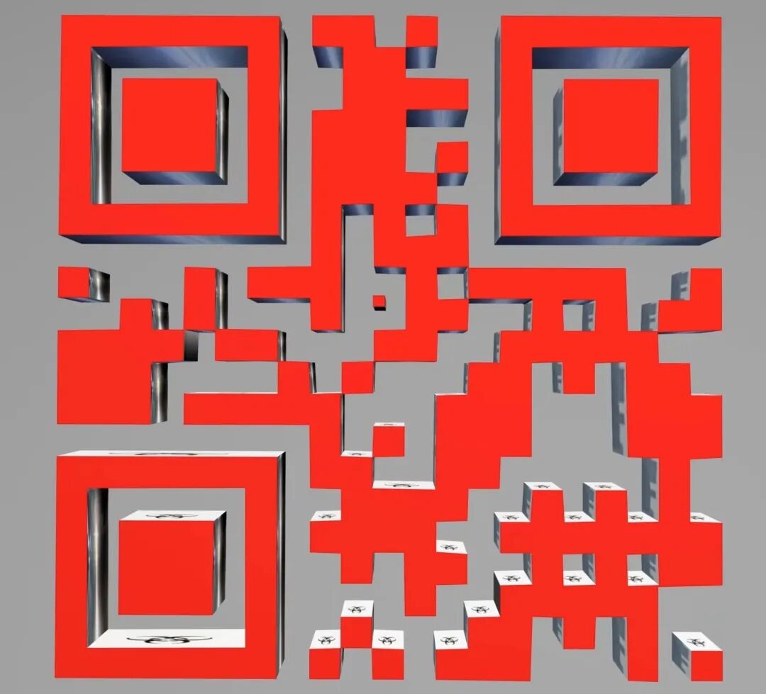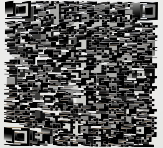 在我的观点来看,二维码是⼀个综合体,首先它是⼀个技术生成的东西,但是你很难说它是工具或者图案或者界面,或者它同时都是,然后它极其抽象,同时也极其具象,能平衡蒙德里安和某些信息化数据化的现代性,但在这个层面上人又是看不懂的,识别不出它的任何信息,只有极简的颜色和构成,我们只能通过机器扫描之后获取它的内部信息,所以还有⼀层数据处理和翻译的过程。