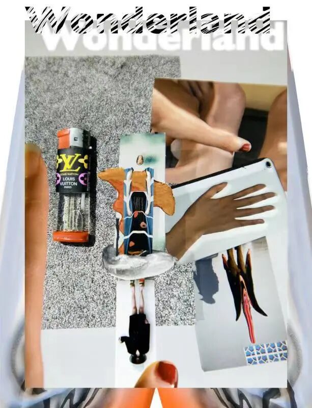 比如《型号1-1.1》因为很显然它混合太多元素进来了,火机、手指、人像、ipad、字符等等。对我来说它们都是⼀次性的、是素材,并不指向⼀个很明确的、有关于⼀个作品的、主题类的内容,所以放在⼀起会有种拼贴感。