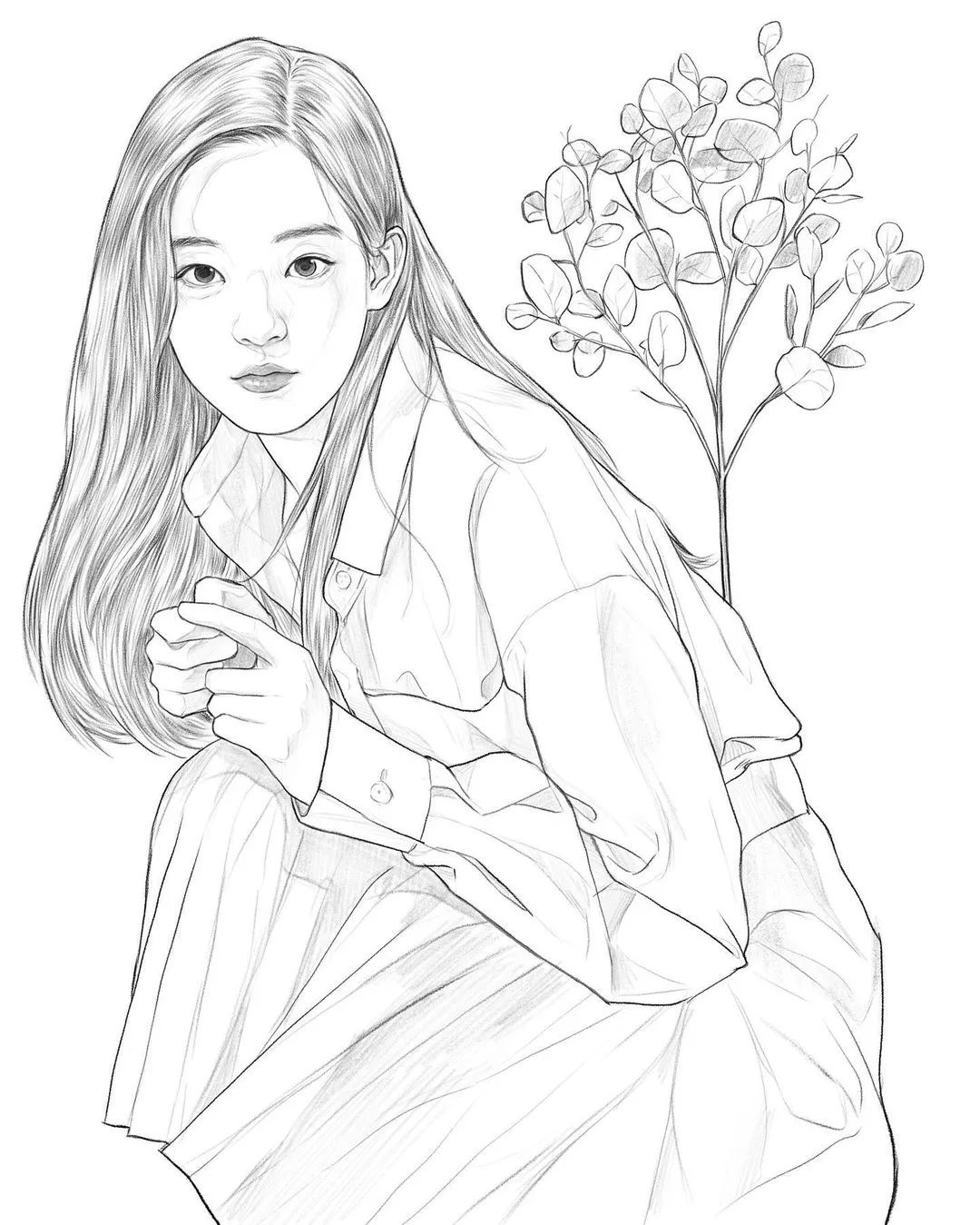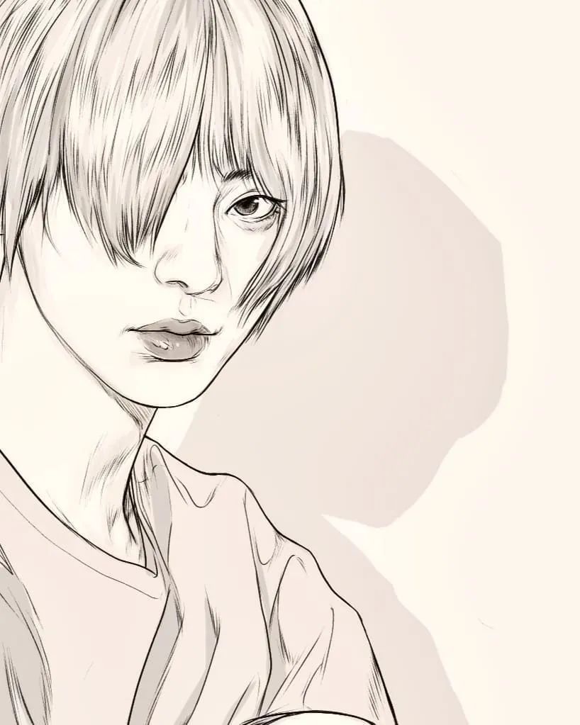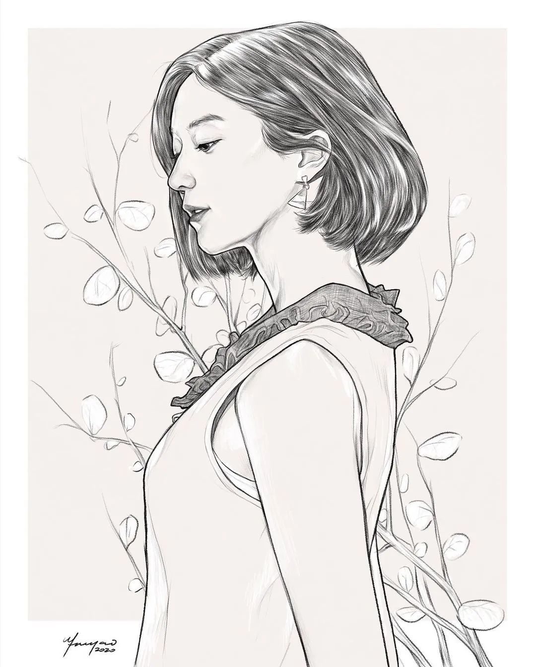 但是,要想用数位板去表现更精彩人物,你还需要考究人物线条的深浅粗细、软硬、长短、穿插、切割、疏密、虚实、动静等等很多线条的变化,画师下图表现得更多的是静态线条的虚实,突出了空间感。