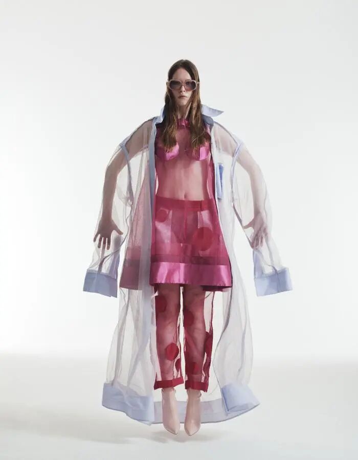 这个系列的灵感来自于对身体自由的探索,通过最纯粹的形式吐露它。系列将各种类型的服装(水手、摩托车手、牛仔、西装等)结构进行解构重组,配以通透质感的面料,以一种具有趣味性和形式感的方式重温了设计师自己的成长历程。