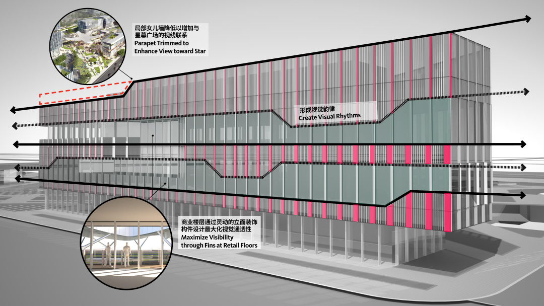 在星瀚广场的设计中,如何打造出色的体验构筑人际交往,如何创造高性能的户外空间,如何将办公功能融入20分钟都市生活圈,成为我们重要的设计考量。
