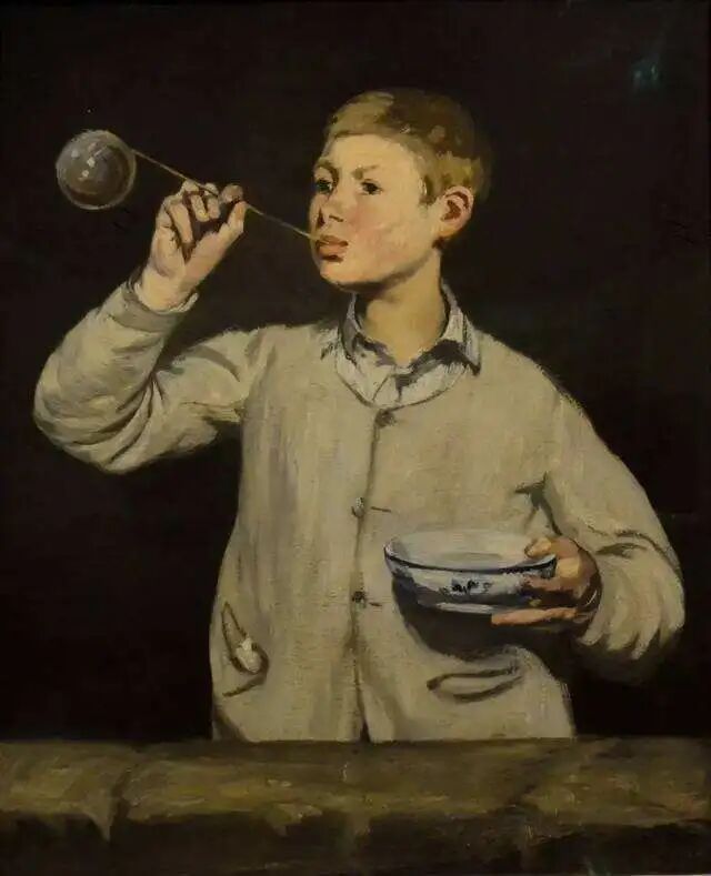 1734年,夏尔丹创作了人像画作《吹泡泡的少年》:一位少年趴在窗边,小心翼翼地吹起一个巨大的泡泡,旁边另一位戴帽子的小孩眼神中充满了期待。