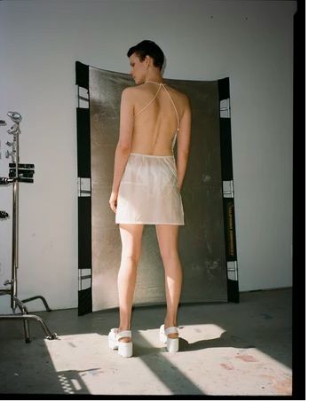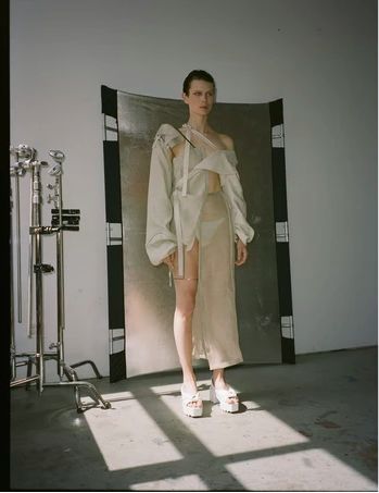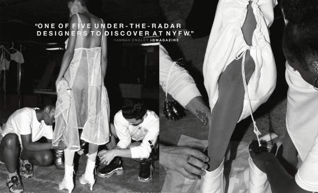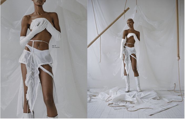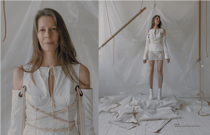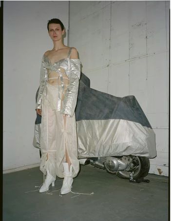 新锐设计师Elena Velez刚刚毕业于美国帕森斯设计学院,二十岁出头的年纪就已经在VFiles上崭露头角,令她一举成名的毕业系列利用回收的帆布,解构的降落伞,废弃金属重现了二战后的破败与重建。大秀过后的她也深受知名时尚杂志《Dazed》、《i-D》、《BOF》、《Vogue》的青睐。
