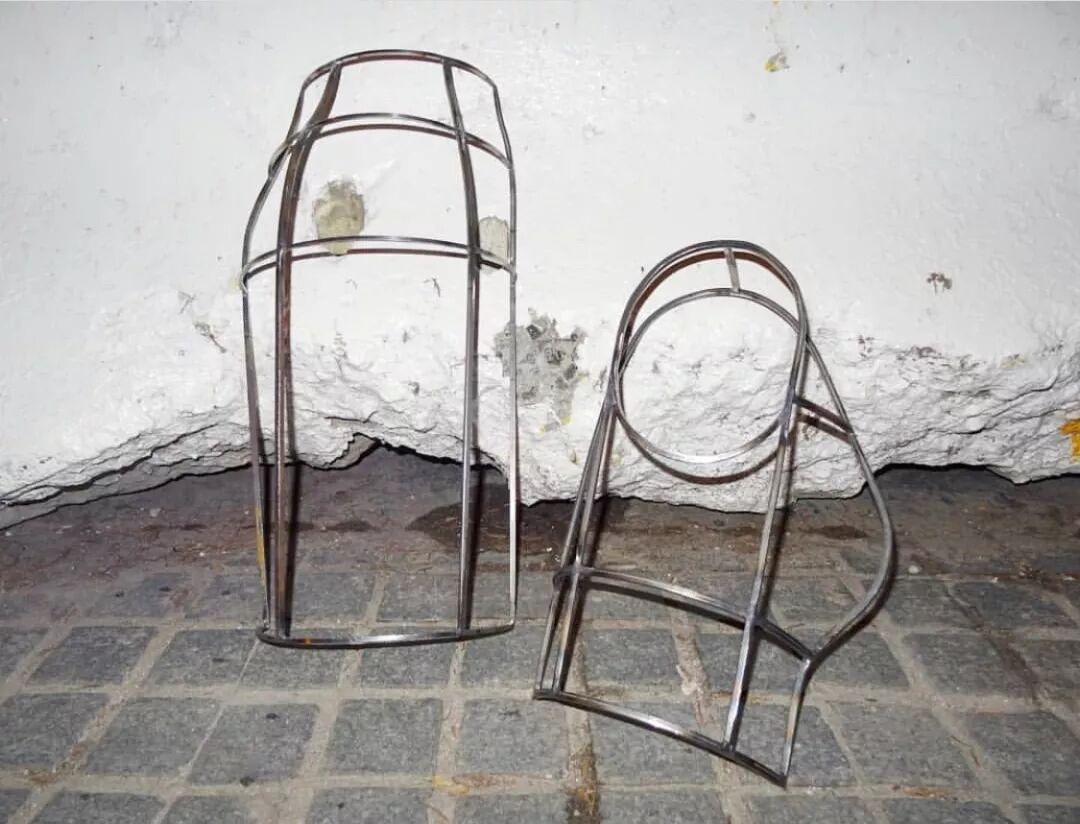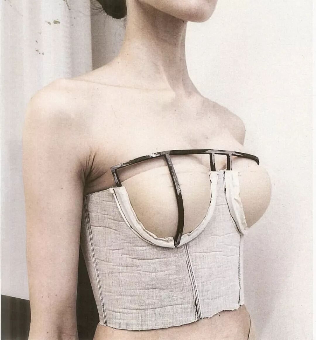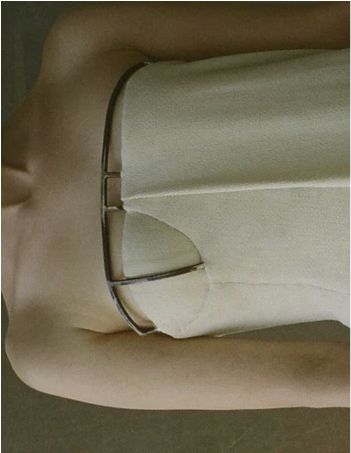 回收的废金属经过加热锤打,弯曲成金属支架,仿佛人体在皮肤外的第二层骨骼。破碎不堪的连衣裙与金属条连接,Elena Velez在试验中不断探索女性柔软与力量之间的关系。