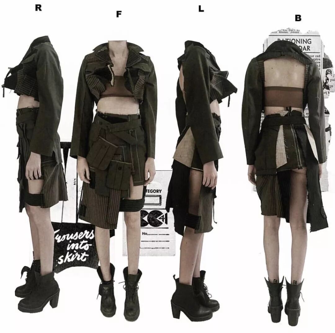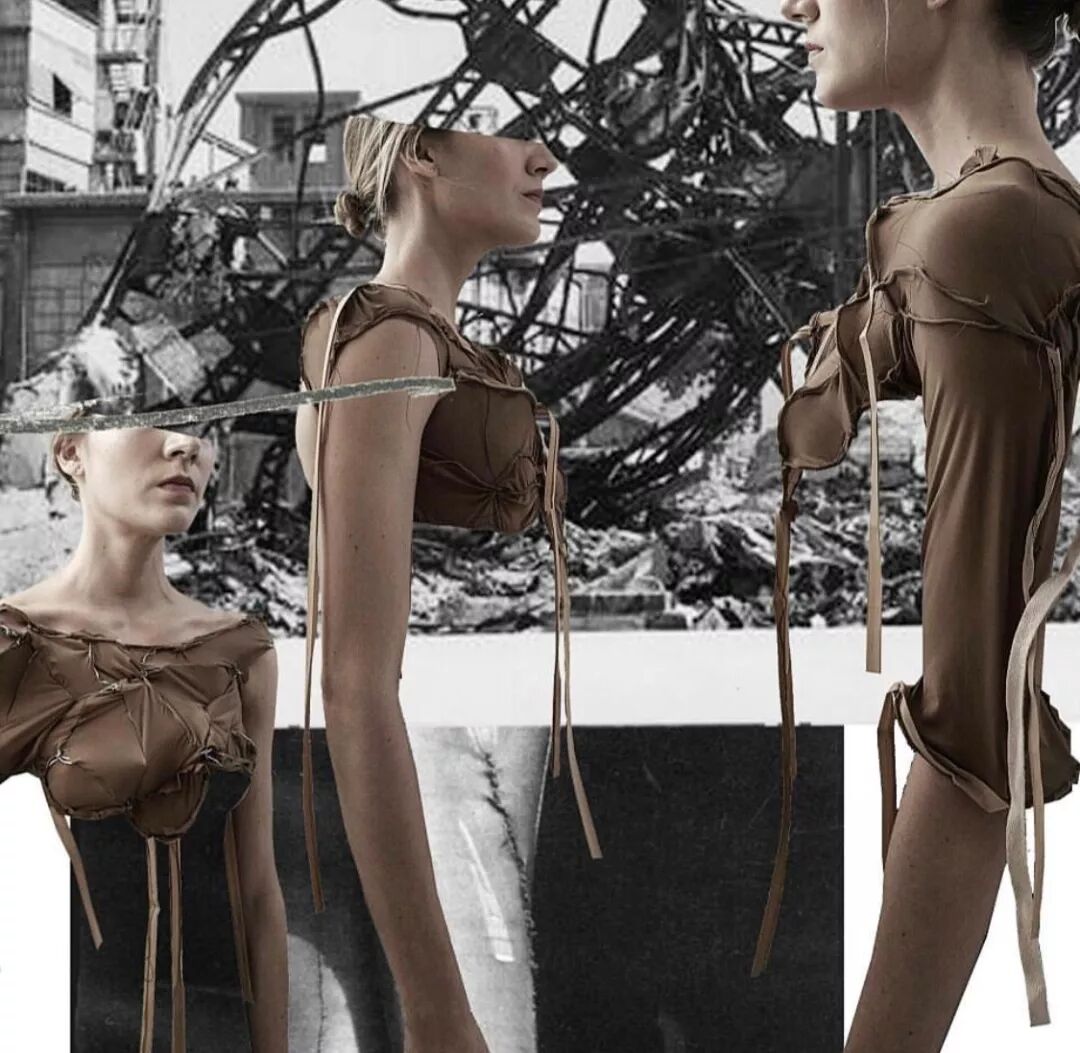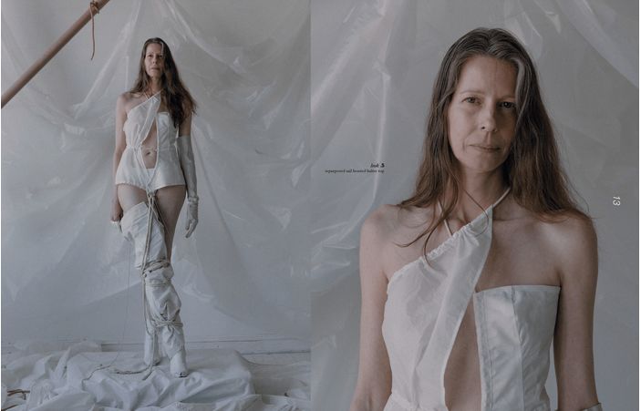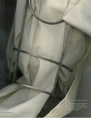 视觉上受到了被战争摧毁的建筑特点为启发,该系列在结构上也受到了工业革新的影响,充满颓废的工业风格借由Elena的手下,在回收的帆布、解构的降落伞以及废弃的金属之中重获新生。