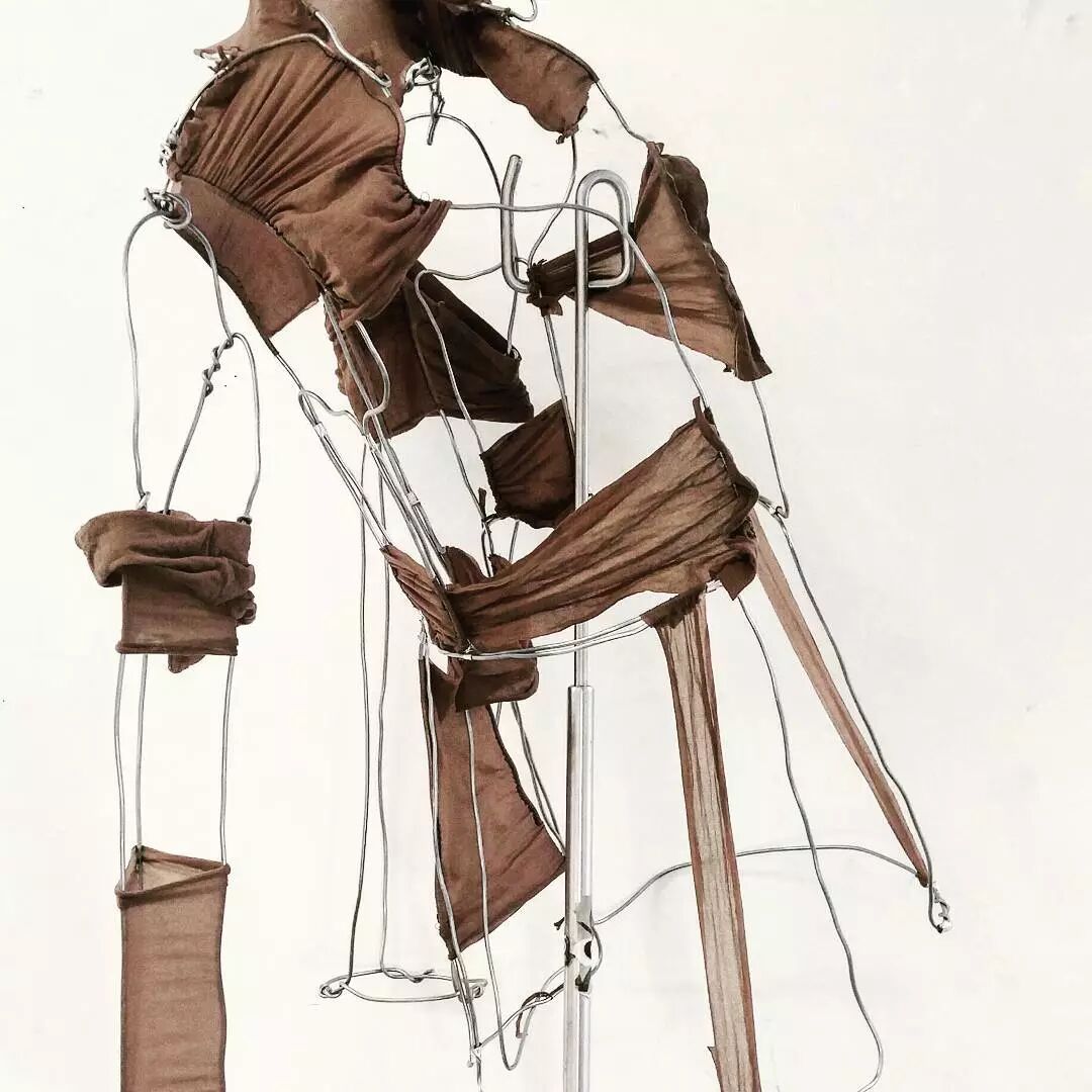 为了最大程度的还原二战所带来的巨大破坏力,所有的原材料基本都是她在网络上专门贩卖战后物品的二手店里淘来的。她将淘来的物品进行解构处理,不同材质之间的拼接与缝线随处可见。