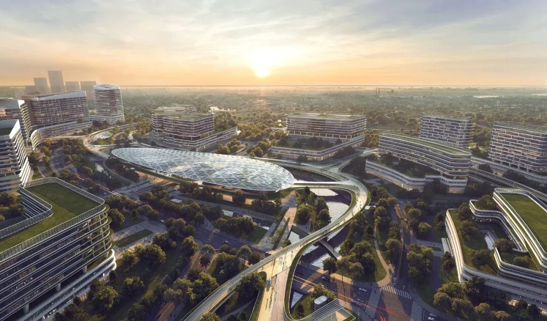 2021年9月,本原设计以独立身份在嘉兴长三角国际医学中心城市设计全球公开征集竞赛中获胜。该国际医学中心规划了超大综合医院、肿瘤医院、儿童医院、康复医院、转化医学中心、国际诊疗中心等医疗资源,希望打造最先进、最智慧、最生态的医学科技创新与转化应用高地。基于嘉兴城市的生态本底和我们对超大规模医疗建筑群的深刻理解,我们创造性地提出构建第四代“生态网络式”医学中心的“生态网络共同体”概念。设计最大的亮点是一条联系基地两侧水域与森林公园的“绿肺”纽带,它在构筑更大生态网络的同时,也打造了集生态、景观、服务、交通于一体的、更加系统复合的三维空间结构,使得群落中所有医院通过这条纽带,实现人流、车流、物流、信息流、能源流的交互,并以此为网络载体,有效解决超尺度、超规模的医疗集群对城市带来的影响,进而实现全域的互动互联。