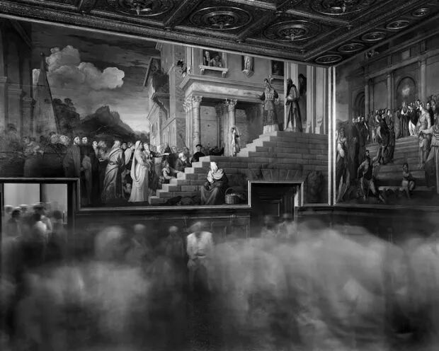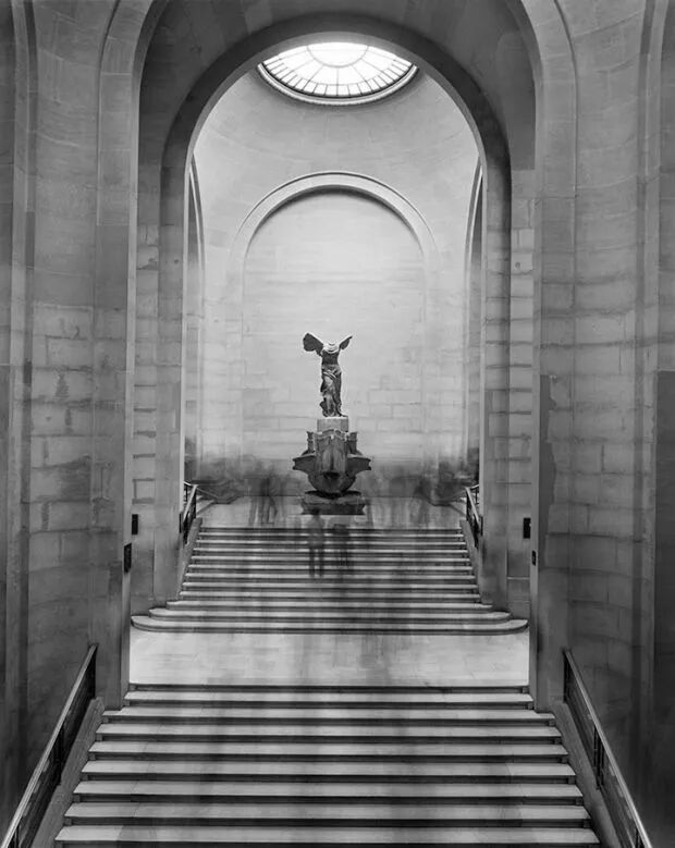 展览馆中的艺术品摆在固定位置,而来来往往的游客却不断地变换着。摄影师Matthew Pillsbury就用了延迟曝光的方法,拍摄了这组照片,黑白颜色之间,行色匆匆的游客将相片也打造成了一幅幅全新的艺术品。