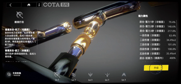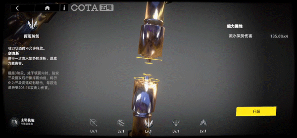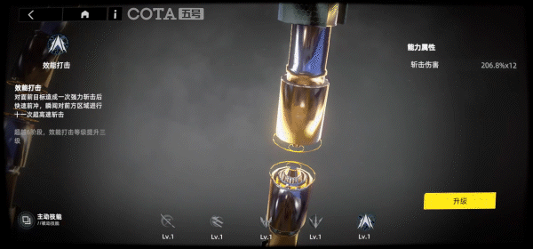 本作许多需要强调功能强度或重度的界面中,大量使用了3D元素,并且在这些功能切换过程中辅以镜头运动。比如下图所示的技能页面内的子项切换: