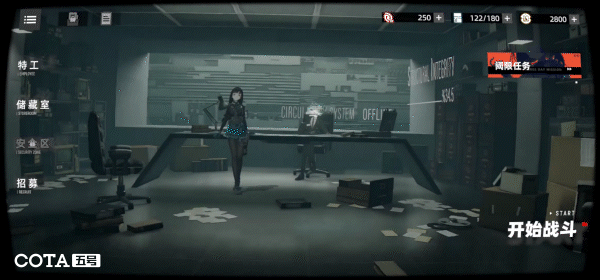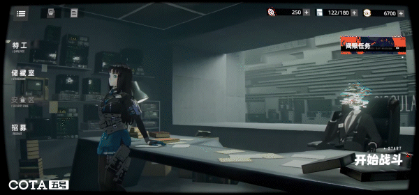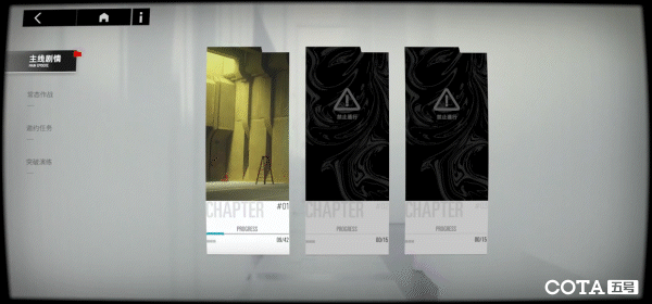 下图所示的主界面到主线剧情界面转场,则又依据具体的图形特征,给界面元素赋予特定的运动,整体感受非常良好: