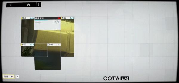 上两图所示即为这种情况,可见在上述切换过程中,镜头是真正在一个比较大的空间内穿梭的。不过正如上图所示,有些物件之间在3D空间内的摆放位置比较别致,距离也比较大,这使镜头轨道稍显复杂,最终效果不够干脆利索。