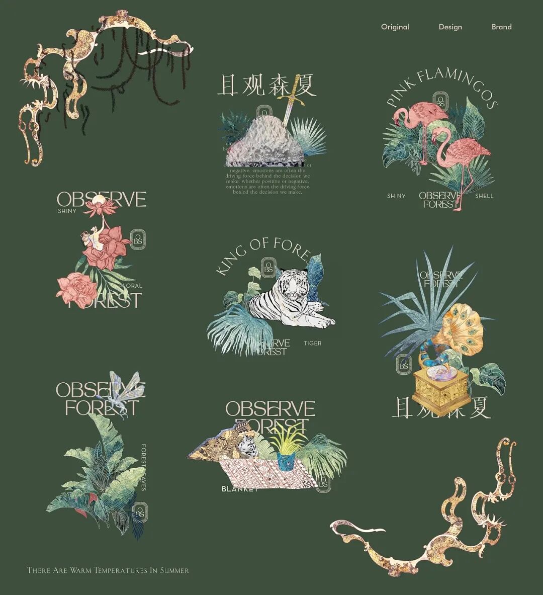 老虎、丛林、海底生物等自然元素做主视觉符号
