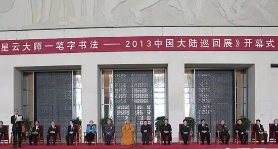 2006年3月19日星云大师在岳麓书院讲堂开讲“千年论坛”,主题为《中国文化与五乘佛法》,时79岁高龄。他曾说:“不要看我的字,要看我的心。”字如其人,放下便是,心正笔正。星云大师生前除了一心一意佛法弘教,他对美术书法亦倾注许多精力,前后创建了24间美术馆、办过8次书法个展。有的时候,他学习弘一以美术书法弘扬佛法,尤其是书法更是终身不离不弃,渴饮禅墨。有评论说:“当代出家人里星云书法作品是最有个性的一个。”2014年9月19日,“星云大师一笔字书法展”在浙江美术馆开幕,时任浙江美术馆馆长斯舜威赋诗赞颂:“天教般若扫红尘,一笔清风四季春。始信杭州千佛地,星云照处悟禅真。”一笔字书法内容多为劝人向善、慈悲包容的名言警句。《钱江晚报》记者报道——