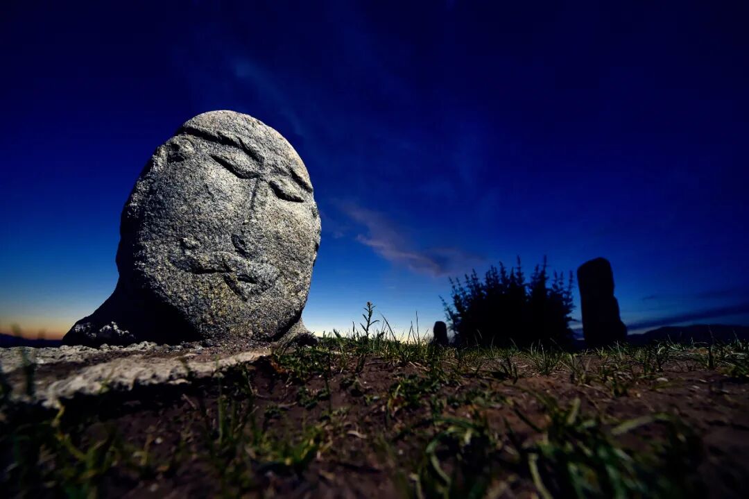 ▲ 伊犁河谷最早的历史遗迹是这些位于昭苏的小洪纳海石人,据说它们是古代人墓葬的标志,但具体的意义至今仍很难说清。图/《丝绸之路》,摄影/赖宇宁