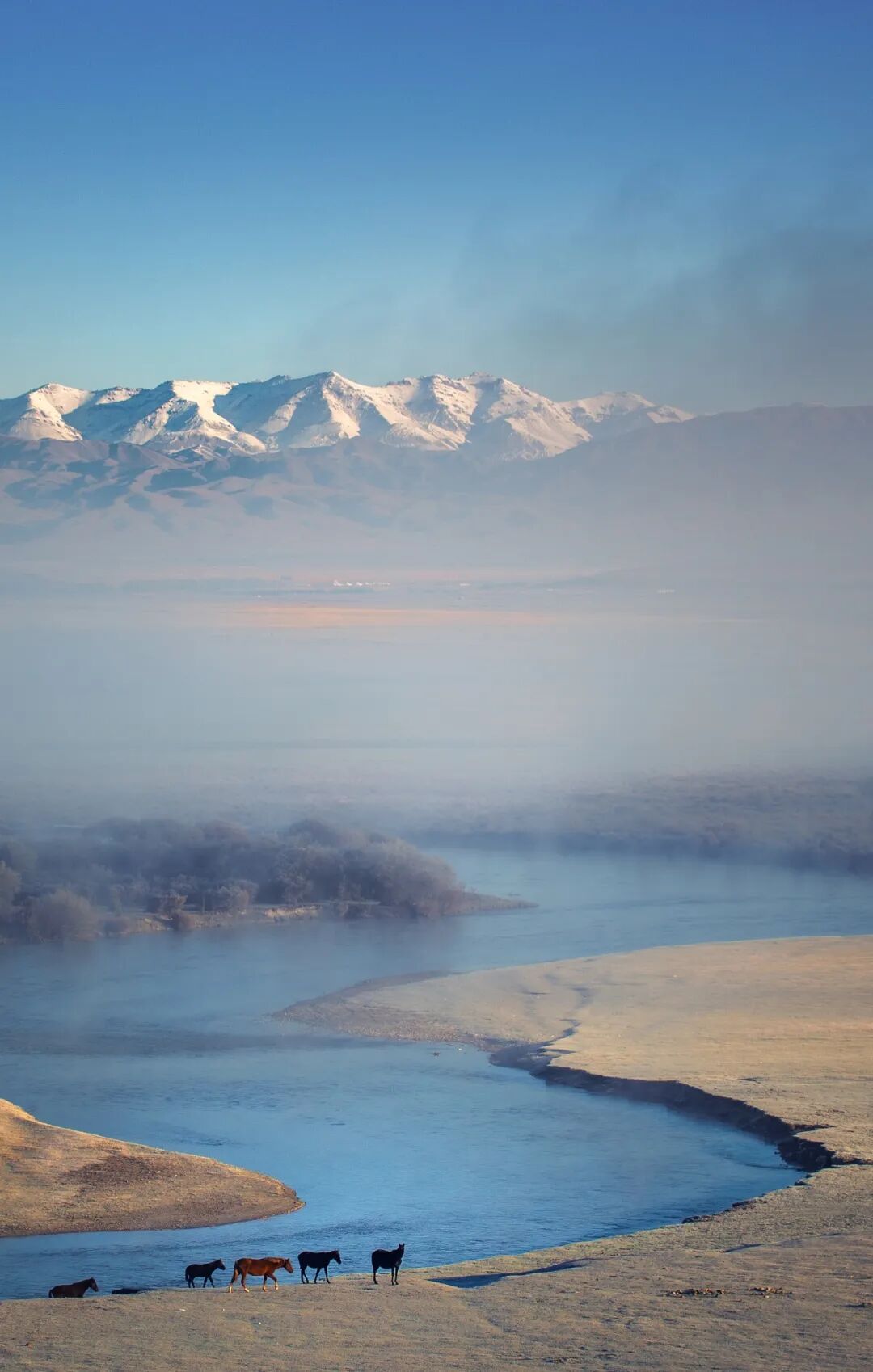 丰富的降水孕育了大河,发源于伊犁及附近地区的特克斯河、喀什河和巩乃斯河共同汇聚形成了新疆水流量最大的河——伊犁河,它的年均径流量高达228亿立方米,约等于半个黄河。伊犁河是孕育伊犁地区的母亲,因此我们也把这座山谷,称为伊犁河谷