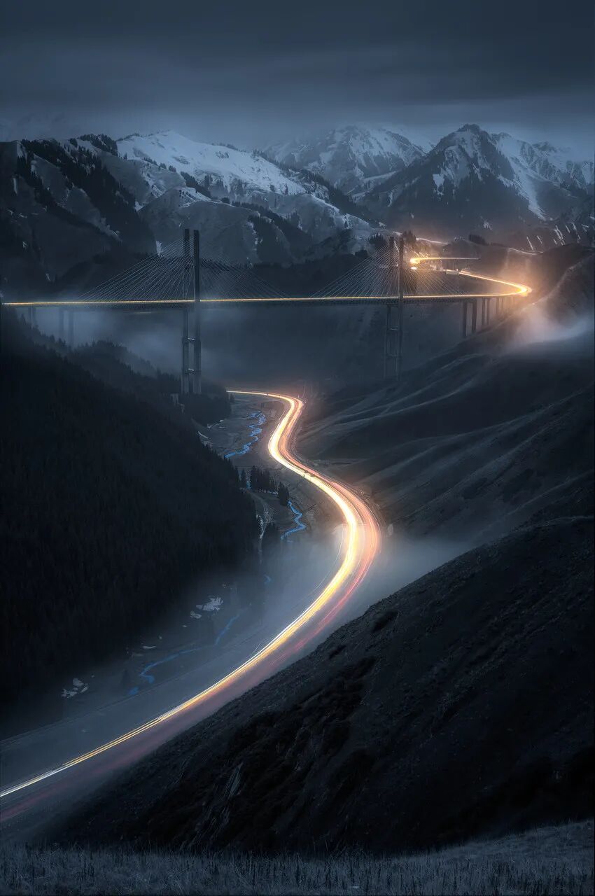 ▲ 连霍高速伊犁段的果子沟大桥。这是伊犁牧民心中最伟大的建筑,有了它,牧民转场时间从原来的300多个小时,缩短到5、6个小时。图/图虫·创意