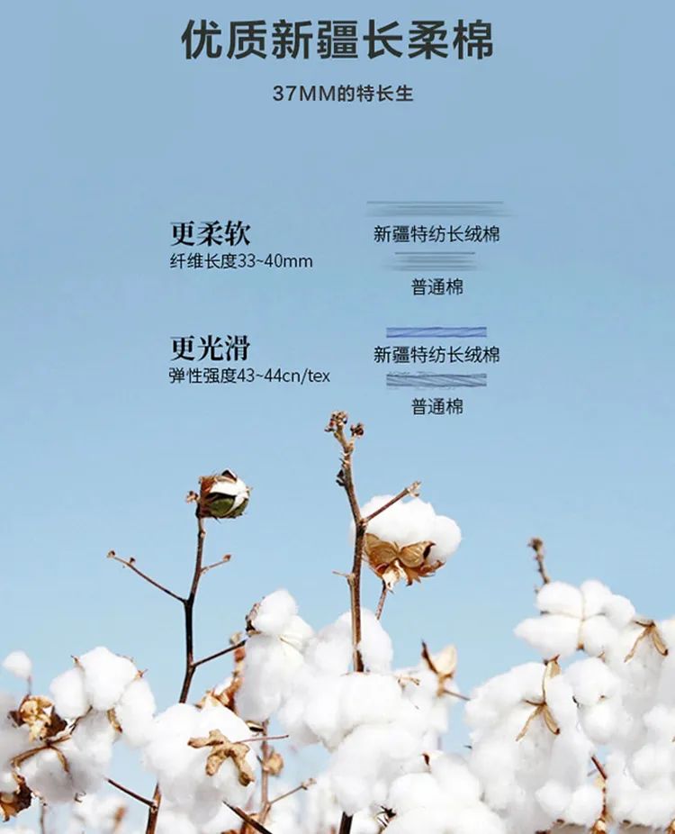 1、面料精选新疆长绒棉,软、滑、糯超贴肤