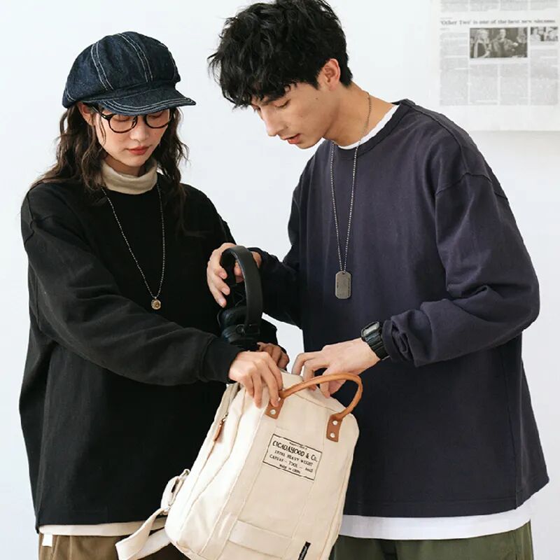 简单生活的这款长袖T恤的设计是落肩宽松版型。容纳各种身材同时还显高显瘦,穿上它,你就是最靓的仔!