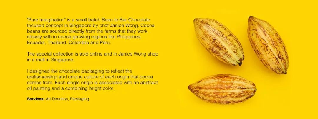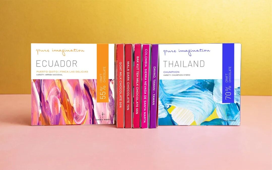 Pure Imagination "是由主厨Janice Wong在新加坡推出的小批量从豆到棒巧克力的概念。可可豆直接来自于与他们密切合作的可可种植区的农场,如菲律宾、厄瓜多尔、泰国、哥伦比亚和秘鲁。