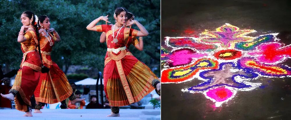 ▼ 小印度的排灯节期间在公共空间举办的文化活动,及散布在各处的「蓝果丽」传统地画(来源:Flickr)