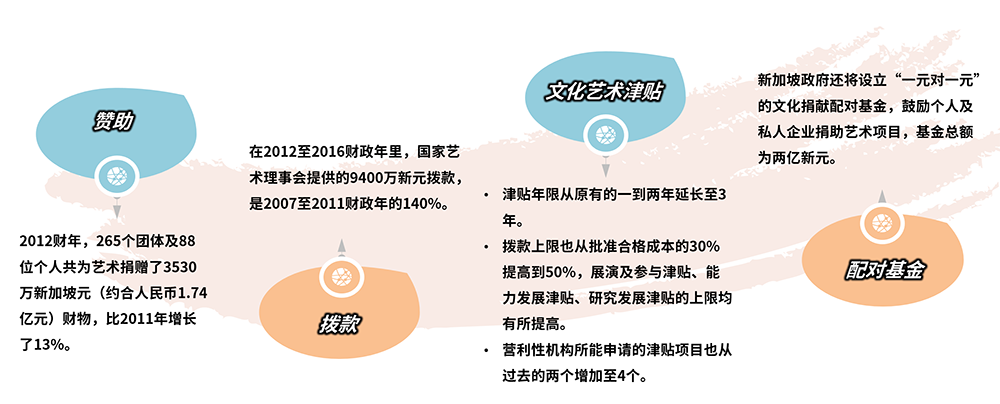 除了租金政策,新加坡还通过多形式补充艺术发展资金,解决文化团体发展中常见的资金困难问题。