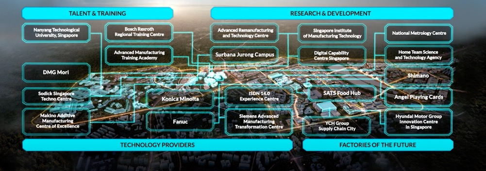 裕廊创新区 (JID)包括4个联系紧密的功能区,承载从建模和试验台到生产和分销的制造活动的完整价值链,专注于通过合作推动创新↓
