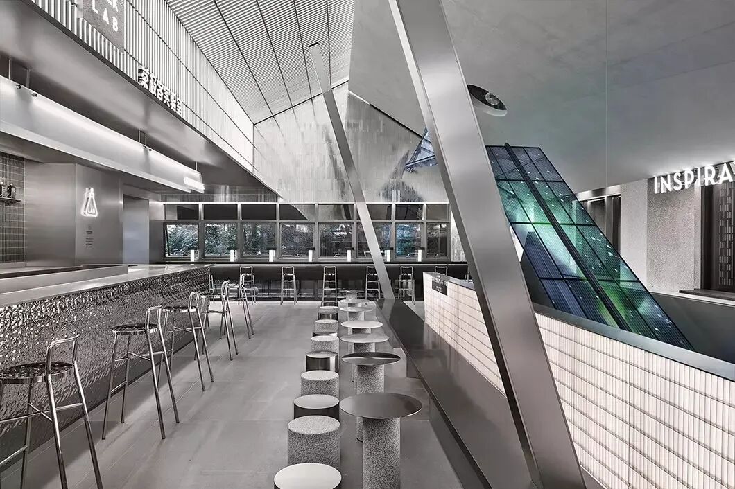 最近刮起的“赛博朋克风”,被很多的设计师所喜爱,而「电镀石材」这种具有金属光泽、石材肌理的材质,更是将这种氛围感拉满,呈现出硬核未来感,在设计圈渐渐流行起来。