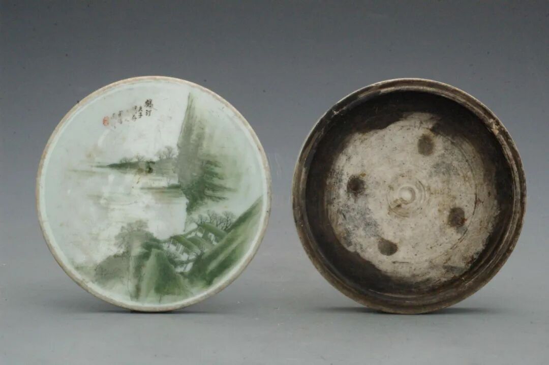 战后,湖南模范窑业工场因受设备和颜料所限,已较少出现艺术性较高的陈设瓷,其多在一些文具、小器件上绘山水、竹石等图案。釉下彩绘只能以蓝、绿、黑、褐几种颜色为主,尤以绿彩最为常见,玛瑙红则较为少见。