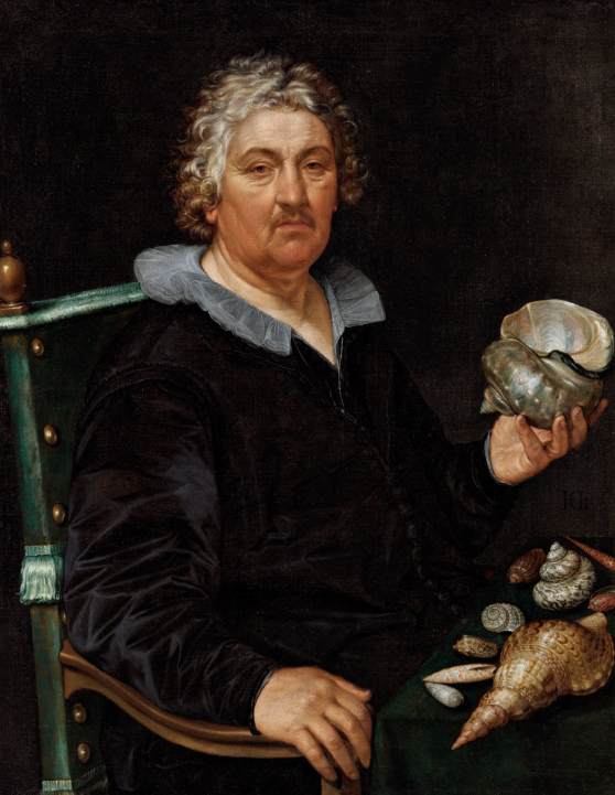 从油画中可以找到更早的证据:在亨德里克·霍尔齐厄斯(Hendrick Goltzius,公元1588〜1617年)1603年绘制的一幅肖像画中,爱好收藏贝壳的荷兰东印度公司股东扬·霍弗茨·范德阿尔(Jan Govertsen van der Aer,约公元1544〜1612年)身前的桌上放着至少9件螺,其中有1件是大法螺,约有3件是芋螺。